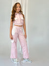 CONJUNTO DEPORTIVO DE MODA, Aet de2 piezas, con blusa manga sisa, con bolsillos de parche y detalles en tela tipo blonda, pantalon tipo crago con detalles en bolsillos, usalo con unos tennis y complementa tu look con unas lentes de sol.